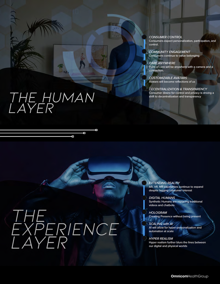 The pandemic has fundamentally transformed how we think about healthcare and technology. With this trend report, we begin to uncover how this disruption has led to a convergence of experiences. This convergence is comprised of multiple layers that, when aligned, create incredibly personalized experiences that transcend modalities via “Human / Experience”.